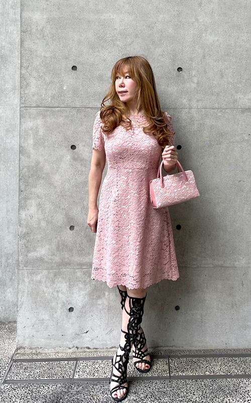 《Tokyo Soirée》Luxury・コードレース・Aラインワンピース(モーヴピンク)