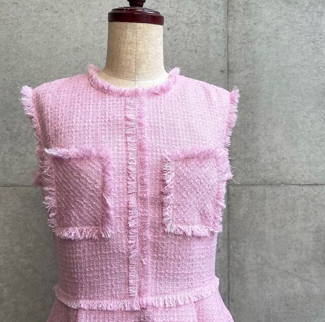 イタリア製シャネルツイードを使用した、美しいRoseのフリンジワンピース。