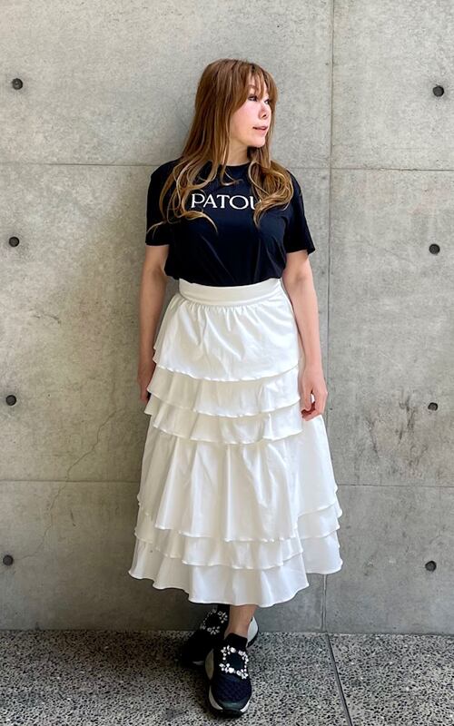 リズミカルなティアードのフレアースカート。